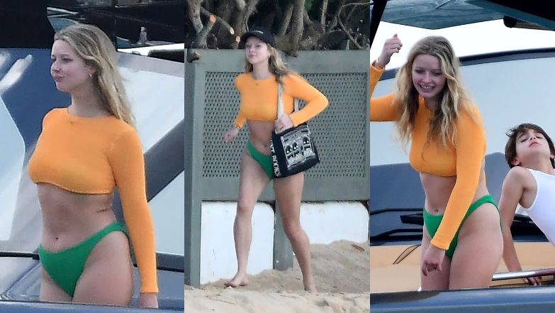Córka Chrisa Martina i Gwyneth Paltrow wkroczyła na pokład w zielono-pomarańczowym kostiumie kąpielowym. Apple dumnie zaprezentowała zgrabną sylwetkę.