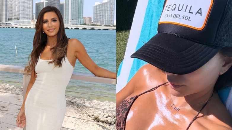 50-letnia Eva Longoria zachwyca złotą opalenizną, pokazując swoją słoneczną kąpiel w panterkowym bikini