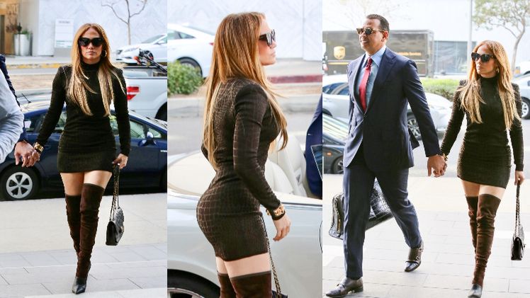 50-letnia Jennifer Lopez zachwyca obłędną figurą w obcisłej sukience i zamszowych kozakach. Piękna? (ZDJĘCIA)