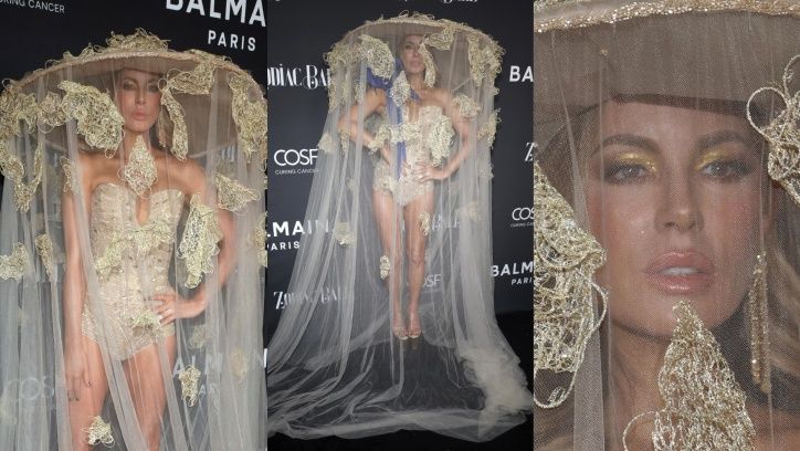 Nie da się ukryć, że Beckinsale na ogół wyróżnia się na salonach, bez wiekszego problemu ściągając na siebie wzrok reszty gości i fotografów. W czwartek jednak 50-latka przeszła samą siebie, gdy przybyła na odbywającą się w Los Angeles galę COSF Zodiac Ball w stroju przywodzącym na myśl... meduzę. Becinsale zapragnęła pochwalić się swoją godną pozazdroszczenia sylwetką i odsłonić ją w skąpym kostiumie odsłaniającym jej nasmarowane samoopalaczem nogi, ramiona i ręce. Pierwsze skrzypce odgrywał jednak kapelusz z szerokim rondem, do którego przymocowana była włócząca się po ziemi siatka ozdobiona aplikacjami o nieregularnych kształtach. Za zasłony dostrzec można było pomalowane na złoty odcień powieki Kate, potraktowane bronzerem gładkie policzki oraz podejrzanie nabrzmiałe usta.