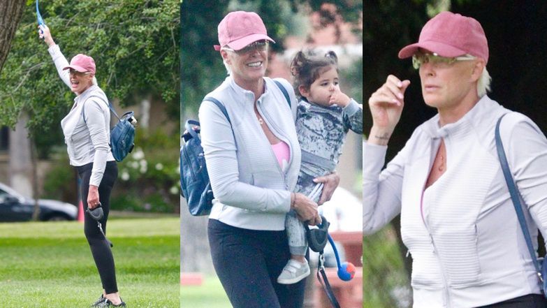 W ostatni piątek celebrytka zabrała dziewczynkę na spacer do parku, nieopodal którego mieszkają. Ubranym na sportowo paniom towarzyszył uroczy psiak, o którego dobry nastrój dbała piłka co rusz rzucana przez 56-latkę za pomocą specjalnego uchwytu. Gdy zatroskana mama musiała odpocząć nieco od noszenia swojego szczęścia na rękach, maleńka Frida koncentrowała się na opróżnianiu puszki z napojem.