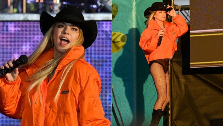 Piosenkarka miała okazję pojawić się na scenie w czwartkowy wieczór i jak na gwiazdę wydarzenia przystało, mocno pokombinowała ze stylizacją. Na zdjęciach możemy zauważyć, że zaprezentowała się w majtkach, pod którymi miała kabaretki. Do tego dobrała masywne buty w stylu glanów oraz pomarańczową kurtkę.