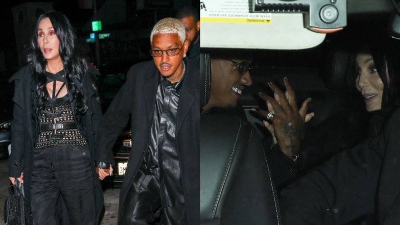 Cher podgrzała atmosferę, gdy do sieci trafiły fotki, jak opuszcza restaurację w towarzystwie Alexandra. Para (?) zaprezentowała się w pasujących do siebie stylizacjach - stawiając na czerń. Piosenkarka miała na sobie ażurowym gorset Alaia, za który trzeba zapłacić około 1550 funtów (prawie 8500 złotych). Do fikuśnej góry dobrała czarne spodnie i błyszczące botki na obcasie. Całość dopełniał długi czarny płaszcz. Alexander zaś wystroił się w skórzaną koszulę i połyskujące spodnie, które również dopełnił elegancki płaszcz, pasujący do okrycia Cher.