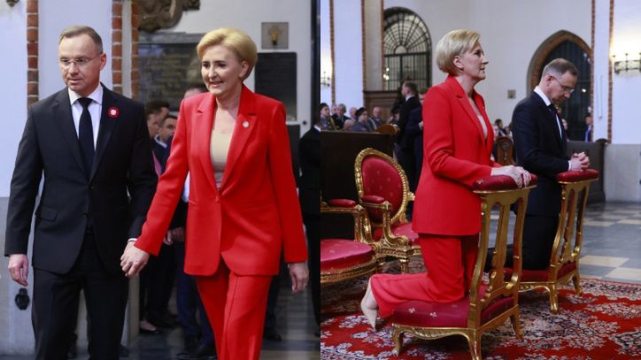 Agata Duda pojawiła się 3 maja z mężem w kościele w związku z uroczystymi obchodami święta narodowego. Pierwsza dama miała na sobie czerwony komplet, który zestawiła z bluzką i czółenkami w, niestety, odcieniu nude. Wyszło modnie?