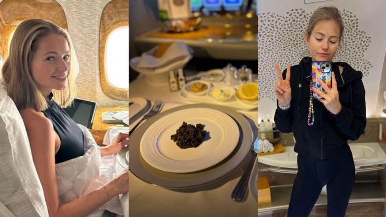 Agata Rubik relacjonuje powrót z Sydney do Polski. Na pokładzie zajadała się kawiorem