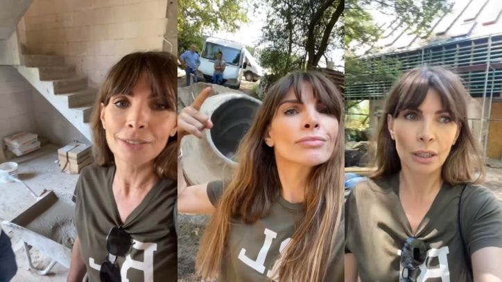Następnie 50-latka "zaprosiła" obserwujących na piętro, gdzie robotnicy w pocie czoła pracowali nad tynkowaniem ścian. Zadowolona z postępów budowlańców aktorka pozwoliła sobie nawet na may komplement.