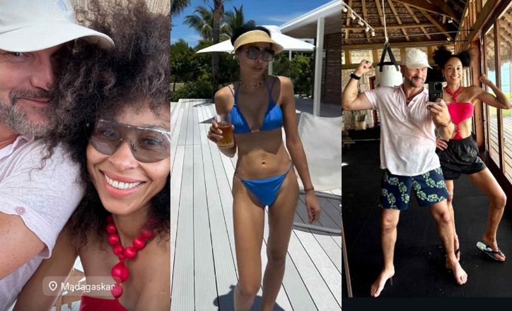 Na opublikowanych fotkach widzimy m.in. Agnieszką pozującą w basenie topless, a także pozującą w bikini na plaży pod palmą. Znalazła się również romantyczna fotka z Grzegorzem.
