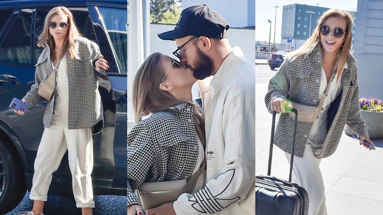 Choć podróż Agnieszki nie będzie raczej wyjątkowo długa, celebrytka z pewnością zatęskni za mężem i córeczkami. Tuż przed wylotem, Kaczorowska obdarowała ukochanego siarczystym pocałunkiem na pożegnanie.