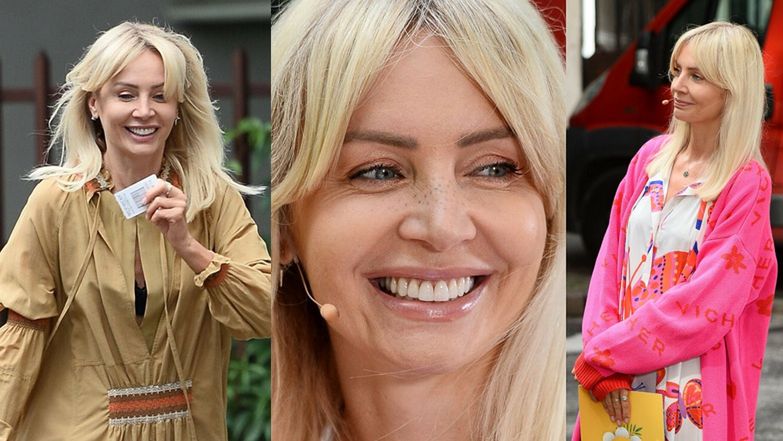 Agnieszka Woźniak-Starak prowadziła śniadaniówkę w sukience w motyle i różowym kardiganie, a po pracy przebrała się w kreację w stylu boho. Która stylizacja lepsza?