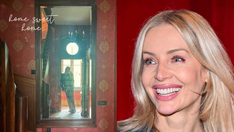 Na wspomnianym InstaStories można zobaczyć odbicie dziennikarki w lustrze, a także mały fragment klimatycznego wnętrza ze ścianami pokrytymi czerwoną tapetą. Uwagę skradają również imponujące schody oraz rzeźbiona w drewnie rama lustra.