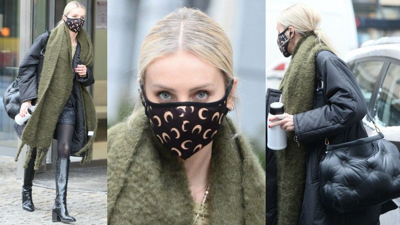 Nie inaczej było w piątek. Tym razem prezenterka postawiła na krótką spódnicę, do której dobrała czarne rajstopy, kurtkę przed kolano w tym samym kolorze, gigantyczny zielony szalik i oryginalną maseczkę w księżyce. Woźniak-Starak zrezygnowała jednak ze swoich ulubionych butów, czyli budzących spore zainteresowanie botków przypominających racice na rzecz kozaków. Całość stylówki uzupełniła luksusowym dodatkiem - wartą około 6,5 tysiąca złotych torebką marki Maison Margiela.