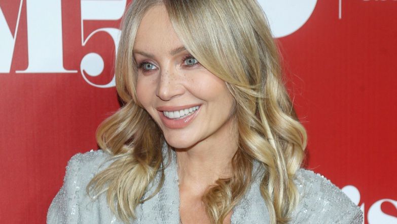 44-latka postawiła na szary, cekinowy garnitur z oryginalnymi wycięciami na nogawkach, spod którego górnej części wystawała koronkowa koszulka. "Look" uzupełniła zawiązywanymi sandałkami, które przyodziała na nagie stopy.