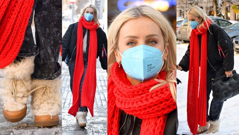 Agnieszka Woźniak-Starak walczy z mrozem w TRZYMETROWYM SZALIKU i włochatych butach (ZDJĘCIA)