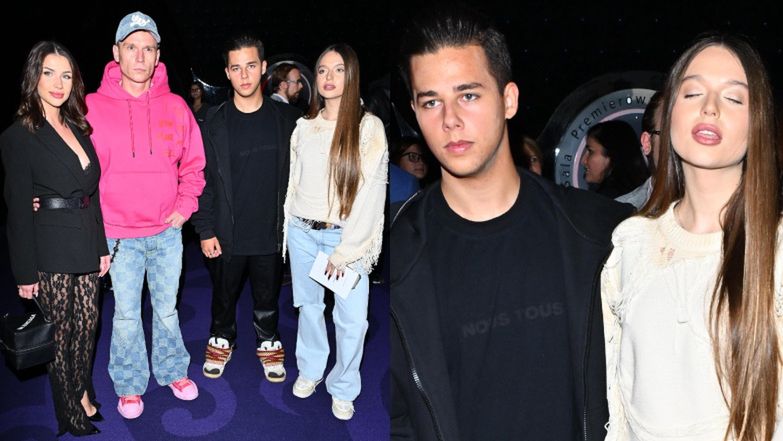 Młodzi zakochani prosto ze stołecznych chodników przenieśli się na salony. Udział w uroczystej premierze filmu "Pod wulkanem" nie zobligował ich jednak do wyciągnięcia z szafy odświętnych ubrań. Wręcz przeciwnie, syn Edyty Górniak pozostał wierny swemu luźnemu stylowi, dzięki czemu ponownie mogliśmy zobaczyć go w oversize'owym ciemnym t-shircie, na który narzucił podobną kolorystycznie bluzę. Do tego dobrał skórzane, czarne spodnie. Zestawił je z białymi sneakersami Lanvin o wartości 3500 zł wyróżniającymi się nie tylko wysoką ceną, ale też wielobarwnymi sznurowadłami.