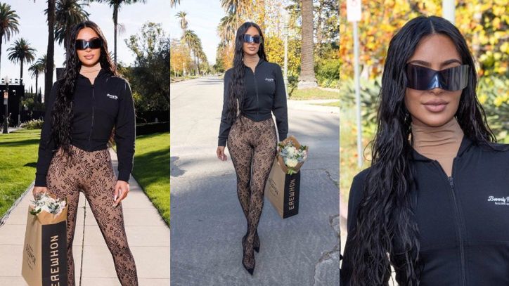 "Lookiem", który Kim zaprezentowała na sobotnim pokazie Balenciagi, gwiazda przeszła jednak samą siebie. Podczas prezentacji najnowszej kolekcji kontrowersyjnej marki, którą zorganizowano w Beverly Hills, matka czwórki wdzięczyła się do zdjęć ubrana w spodniobuty Balenciagi w koronkowy print oraz krótką, obcisłą bluzę na suwak. Przed słońcem celebrytkę chroniły osobliwe okulary, a w ręku dzierżyła papierową torbę, z której wystawał bukiet kwiatów. Na evencie celebrytce towarzyszyła jedna z sióstr, Kendall Jenner, która zrezygnowała z większej ekstrawagancji i odziała się w prostą, czarną suknię.