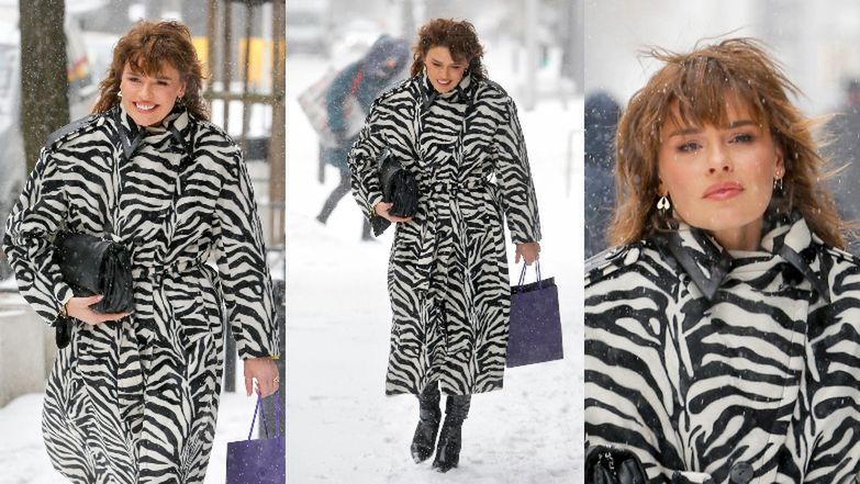 "Alternatywna" Natasza Urbańska w stylizacji rodem z lat 80. walczy z mroźnym wichrem przed studiem "DDTVN" (ZDJĘCIA)