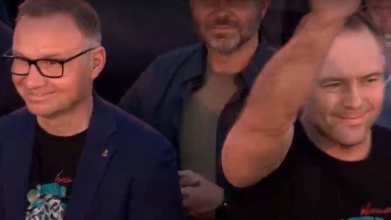 Andrzej Duda i Karol Nawrocki zaszczycili swoją obecnością emitowany przez Telewizję Polską koncert "Warszawiacy śpiewają (nie)zakazane piosenki". Mieli na sobie takie same T-shirty.