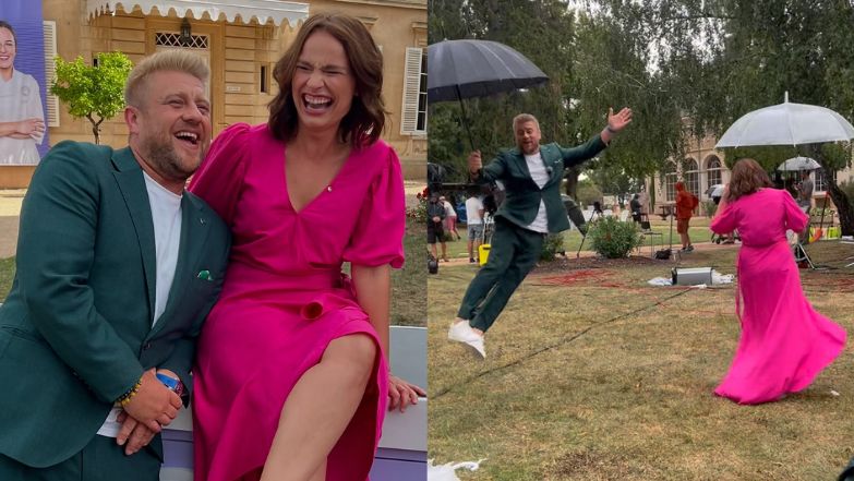 Jedną z osób, które współpracowały z Tomaszem Jakubiakiem, była Ania Starmach. Razem pełnili rolę jurorów w programach "MasterChef" oraz "MasterChef Junior". Wygląda na to, że łączyła ich wyjątkowo serdeczna relacja, o czym świadczy najnowszy wpis opublikowany na Instagramie Starmach. Pokazała w nim kulisy nagrywania programu TVN. W pewnym momencie deszcz przerwał zdjęcia. Para jurorów postanowiła wykorzystać ten moment - chwycili za parasolki i zaczęli tańczyć w ogrodzie.