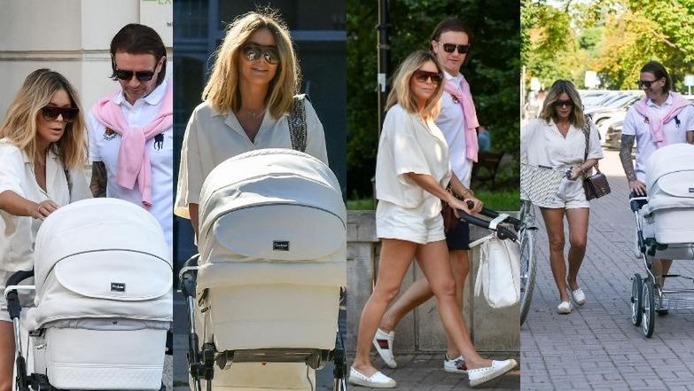 "Anielska" Małgorzata Rozenek i wystylizowany Radosław Majdan z dumą prowadzą wózek Henryczka ulicami Warszawy (ZDJĘCIA)