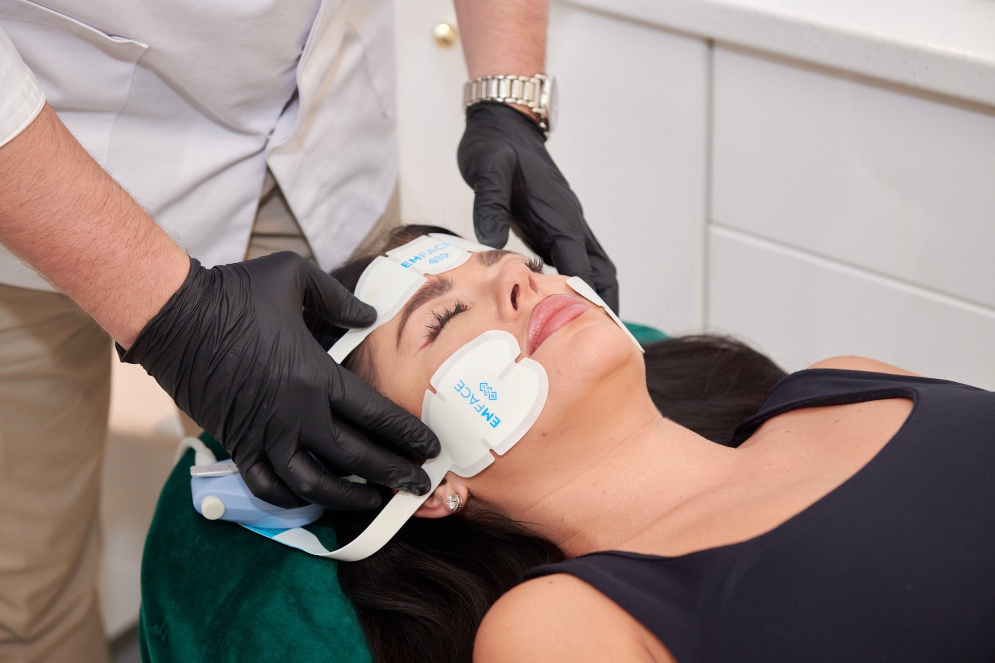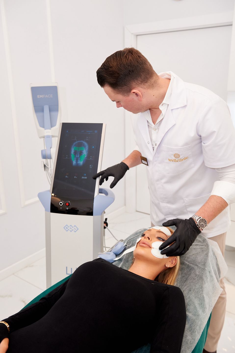Przebieg zabiegu EMFACE® jest bardzo prosty. Na początku garść formalności – należy porozmawiać z operatorem lub osobą wykonującą zabieg na temat kondycji skóry. Następnie przechodzimy do przygotowania skóry – demakijaż i założenie opaski na głowę. W kolejnym kroku operator przykleja trzy aplikatory jednorazowego użytku – jeden na czole i dwa na policzkach. Następnie urządzenie BTL EMFACE® jest włączane, rozpoczynając proces odmładzania. Początkowo pacjenci odczuwają delikatne ciepło, które stopniowo rozchodzi się po twarzy, dając przyjemne uczucie relaksu. To efekt działania zsynchronizowanej radiofrekwencji, która podgrzewa tkanki do efektywnej temperatury, wspomagając produkcję kolagenu i elastyny.