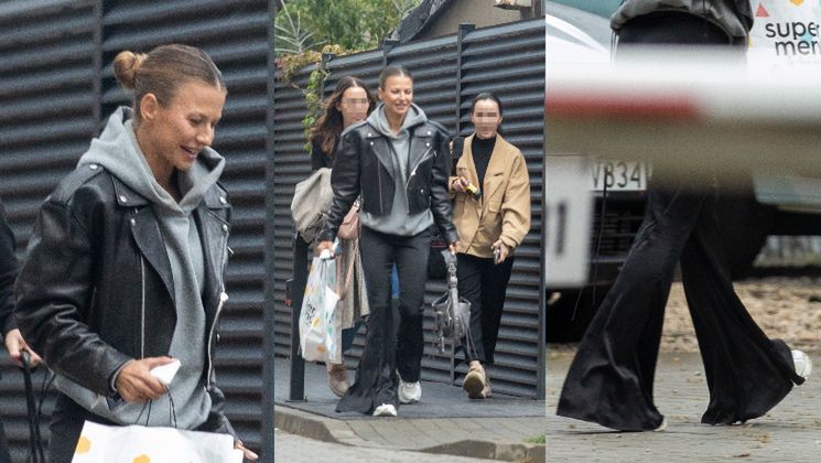 Anna Lewandowska w ramonesce za 16 tysięcy złotych i w za długich dzwonach bohatersko drepcze na kolejną sesję (ZDJĘCIA)