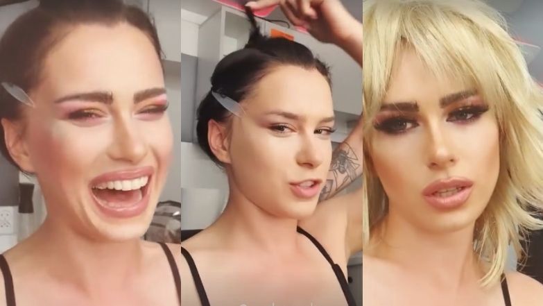 Chwilę później celebrytka założyła na głowę drapieżną blond perukę i pokazała się światu w nowym wydaniu.