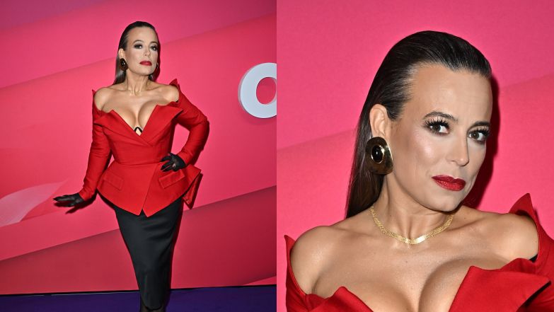 Anna Mucha tego wieczoru zdecydowała się na garsonkę, lecz w niezwykle seksownym wydaniu. Aktorka miała na sobie czarną spódnicę za kolanko i krwiście czerwony żakiet z odsłoniętymi ramionami, głębokim dekoltem oraz baskinką. Stylizację dopełniały m.in. czarne rękawiczki, zaczesane pukle i mocny makijaż z akcentem na usta. Zobaczcie, jak 44-letnia gwiazda zaprezentowała się na ściance u swojego pracodawcy.