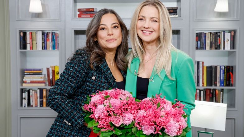 Anna Mucha po przybyciu do studia otrzymała bukiet kolorowych kwiatów.
