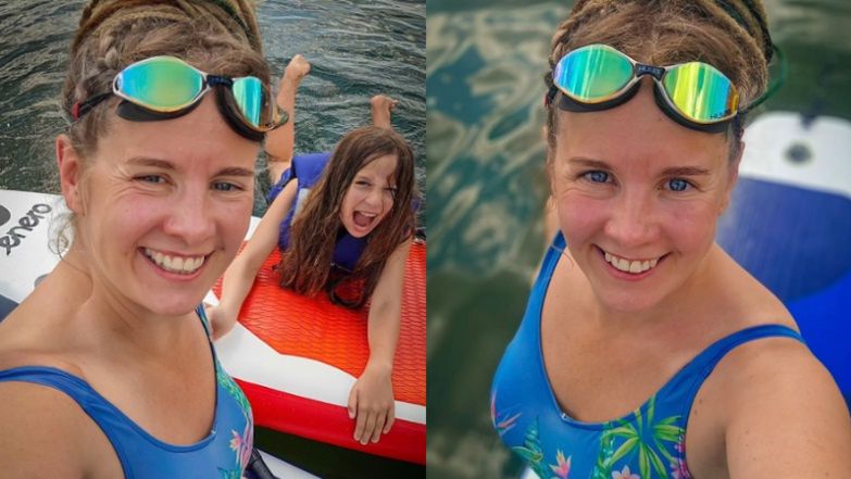 Anna Powierza w stroju kąpielowym przemierza jezioro z córką i zabawia wierszem: "KTO PŁYWA NA SUP-IE, TEN WSZYSTKO MA W..."