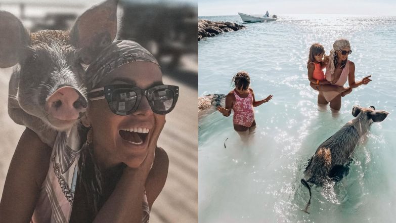 Anna Wendzikowska pluska się ze świniami. Do kąpieli zaprosiła też córki: "Wspomnienie z pięknych Bahamów"