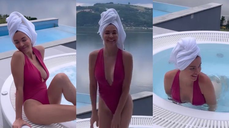 Anna udokumentowała swój pobyt nad Dunajcem i opublikowała na Instagramie nagranie, na którym przybierała różne pozy w jacuzzi. Podróżniczka była ubrana w różowy, jednoczęściowy kostium kąpielowy. Tego dnia celebrytka zaprezentowała się w wersji saute i z ręcznikiem na głowie.