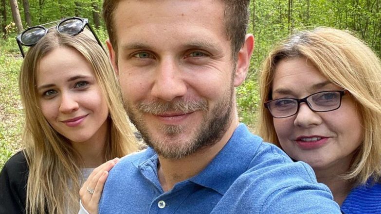 Antek Królikowski wybrał się na rodzinny spacer z mamą i ukochaną. Fani dopytują: "Kasia ma na palcu PIERŚCIONEK ZARĘCZYNOWY?!"