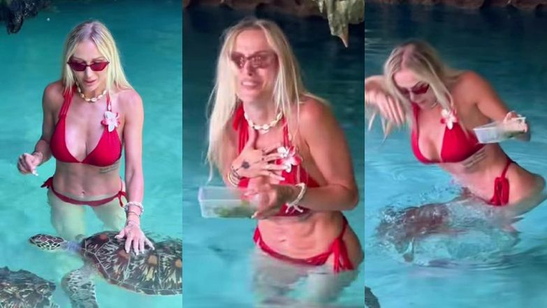 Eliza Trybała tym razem postanowiła podzielić się nieco innym materiałem. Na jednym z opublikowanych filmików pokazała, jak karmi żółwie, pozując przy tym w czerwonym bikini. Na nagraniu widać, że początkowo była zachwycona bliskim kontaktem ze zwierzętami i reagowała entuzjastycznie, nagrywając wszystko z uśmiechem. Jednak w pewnym momencie jeden z żółwi chyba miał dość pozowania i postanowił ugryźć naszą celebrytkę, chwytając za jej bikini.