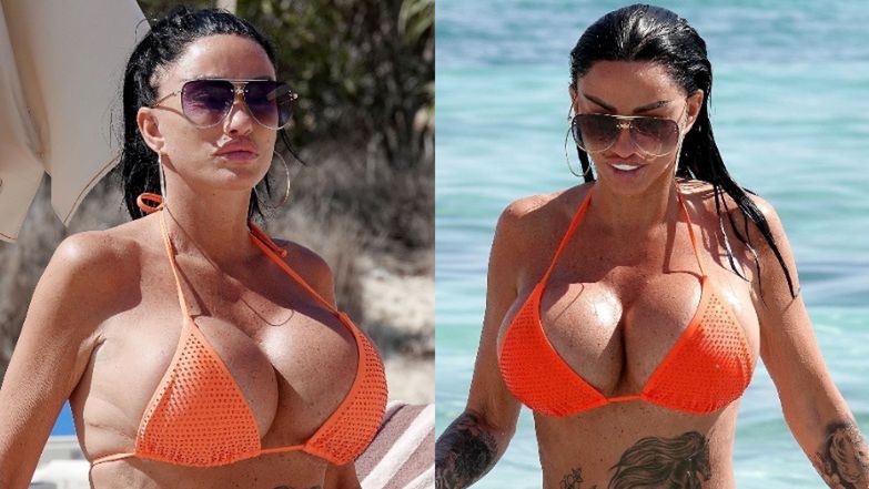 Paparazzi "przyłapali" ostatnio bankrutującą celebrytkę podczas beztroskich wakacji na Cyprze. Katie korzystała ze słonecznej pogody i oczywiście pochwaliła się plażowiczom efektami swoich "najnowszych" operacji plastycznej. Miłośniczka skalpela przechadzała się po plaży w skąpym pomarańczowym bikini, które ledwo utrzymało w ryzach jej piersi.