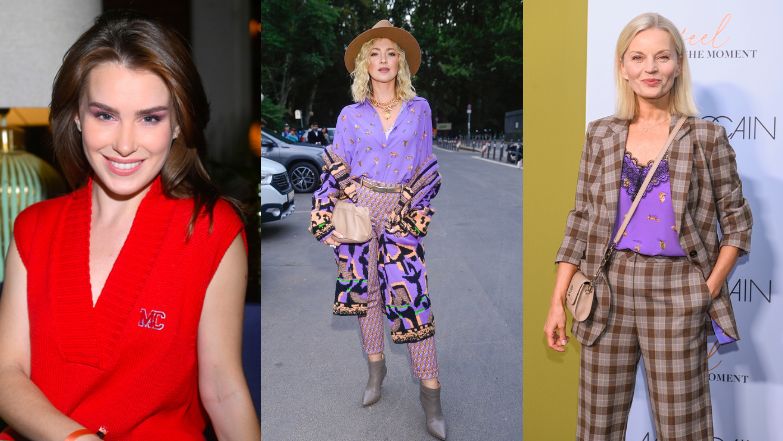 Kurdej-Szatan na pokazie pojawiła się ubrana w kolorowe spodnie oraz fioletową koszulę w drobny wzór przedstawiający mieszkańców lasu, w tym lisy, jeże czy wiewiórki. Pstrokatą stylizację uzupełniła wzorzystym kardiganem, kapeluszem oraz botkami na obcasie. Printy królowały również w looku Małgorzaty Foremniak, które tego dnia zaprezentowała się w kraciastym garniturze, topie ozdobionym koronką i pantoflach w cętki. Anna-Maria Sieklucka na event przybyła zaś w spodniach z lampasami, czerwonej kamizelce oraz klasycznej marynarce. Prosty strój uzupełniła żółtą torebką i niebieskimi sandałkami.