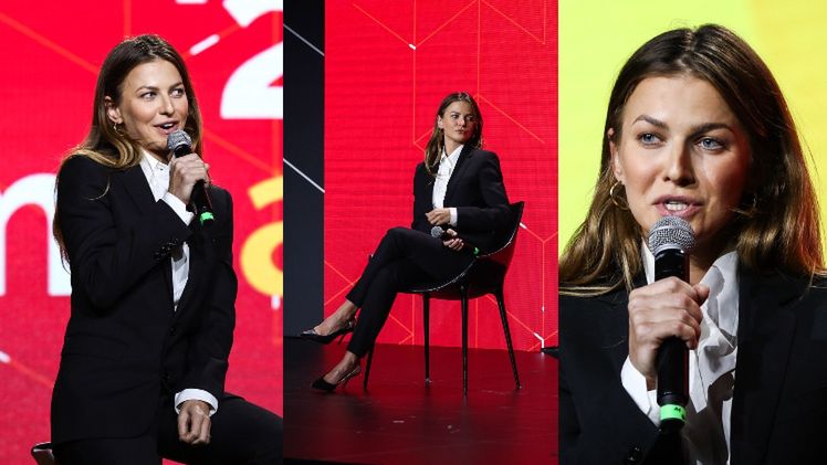 "Bizneswoman" Anna Lewandowska w eleganckim garniturze i szpilkach emanuje profesjonalizmem na kongresie Impact’21 (ZDJĘCIA)