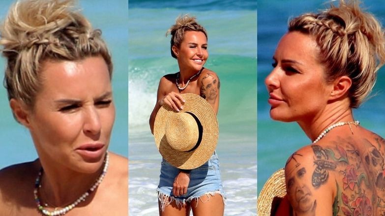 Podczas plażowania Lipińska chciała nieco popracować nad opalenizną, brzegiem morza przechadzała się więc topless.