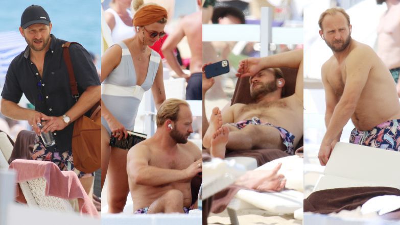 Szyc i Nagłowska rozkoszowali się upalną pogodą, leżąc na leżakach i oddając się rozrywkom. Aktor z słuchawkami w uszach z zaciekawieniem oglądał coś w telefonie, a leżąca obok Justyna, czytała książkę.