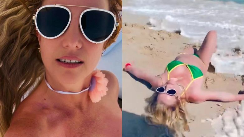 Britney Spears podzieliła się w nocy z obserwującymi na Instagramie kilkoma postami z plaży w Meksyku. Zrobiła sobie nagie selfie na leżaku, mając na sobie jedynie biżuterię i okulary przeciwsłoneczne. W kolejnym wpisie pochwaliła się zdjęciami stóp i dekoltu w kostiumie kąpielowym. Opublikowała też dwa nagrania w bikini. Na jednym z nich leży na piasku, czekając, aż zaleje ją fala. Na drugim stroi dziwne miny do kamery i wymachuje głową. Gwiazda, podobnie jak w przypadku pozostałych wpisów na swoim profilu, zablokowała możliwość dodawania komentarzy.