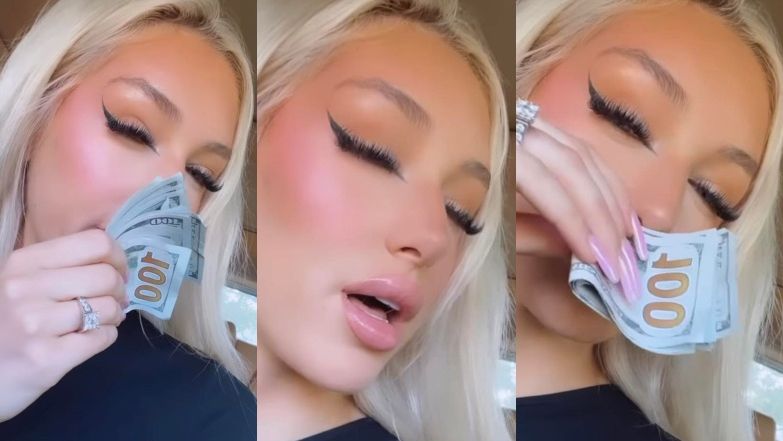 Pierwsze co zrobiłam po powrocie do Miami to pojechałam do bankomatu wyjąć dolarsy, aby je wąchać. Kocham dolarsy - czytamy obok nagrania z Caroline inhalującą się plikiem banknotów.