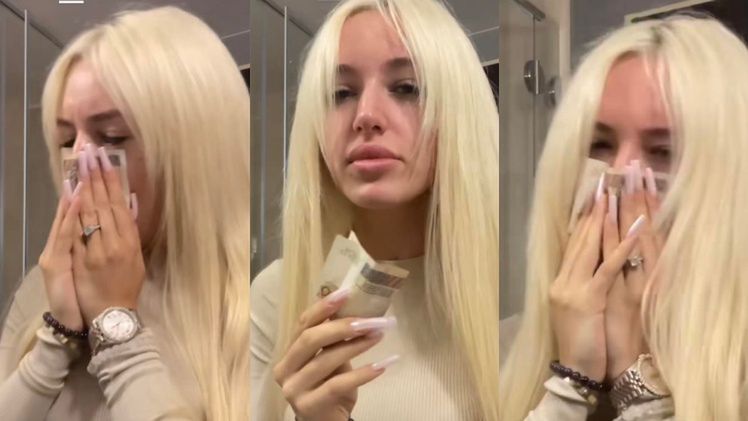 Caroline Derpienski pokazała na Tiktoku, jak się malować. W pewnym momencie wytarła nos dwustuzłotowym banknotem