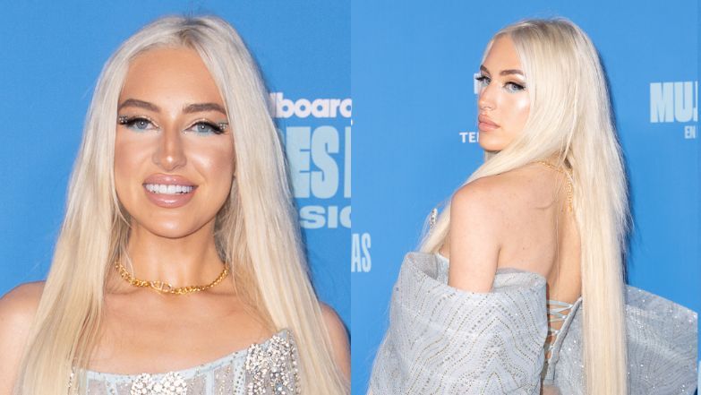 Derpienski przykuwała uwagę nie tylko efektowną kreacją, ale też mocno przedłużonymi włosami. Blond pukle sięgały jej aż do prześwitujących pośladków.