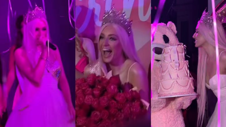 Caroline Derpienski z pompą świętuje 23. urodziny: pokaz mody, występ wokalny i wielki różowy miś