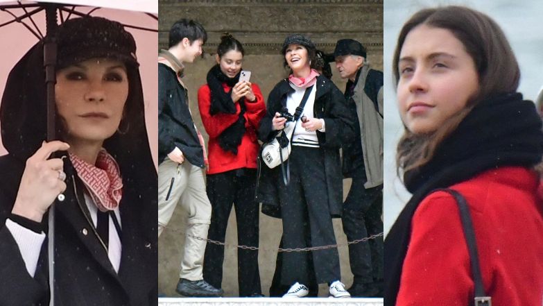 Catherine Zeta-Jones i Michael Douglas zwiedzają deszczową Wenecję z DOROSŁYMI pociechami (ZDJĘCIA)