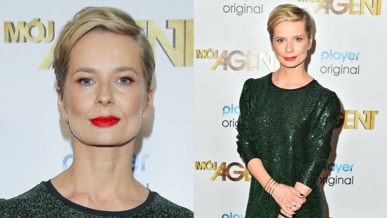 Nie da się ukryć, że 50-latka doskonale się prezentuje. Cielecka jakiś czas temu zaserwowała sobie ogromną metamorfozę i ścięła swoje blond pukle. Widać, że fryzura przypadła jej do gustu, bo od tego czasu możemy podziwiać ją w krótkich włosach. Teraz Magda zaprezentowała się na premierze serialu "Mój Agent" w dopasowanej cekinowej sukience, którą zestawiła z wysokimi kozakami na szpilce. Nie zabrakło również stylowych dodatków. Aktorka wybrała złotą bransoletkę i kilka pierścionków w tym samym kolorze. Wzrok przyciągały także ogniście czerwone usta, które nadawały całej stylizacji nieco drapieżnego charakteru.