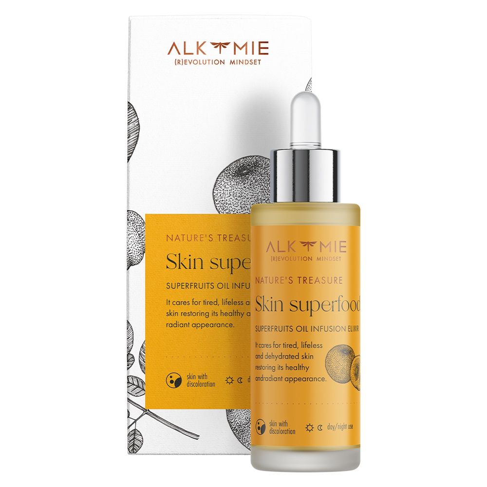 Kolejnym krokiem będzie nałożenie swojego ulubionego serum. Multiwitaminowy olejek od Alkmie Skin Superfood dostarczy dodatkowej dawki witaminy C, organicznych olejków oraz ekstraktu z superowoców, dzięki czemu odmłodzi i rozświetli skórę. Ponadto ochroni ją przed szkodliwym działaniem wolnych rodników, wszechstronnie rewitalizując. Odnawia barierę ochronną cery i skutecznie przeciwdziała procesom starzenia. Produkt ma postać bioaktywnego "suchego" olejku o lekkiej, jedwabistej konsystencji, dzięki czemu szybko się wchłania, jest wydajny i nie obciąża skóry.