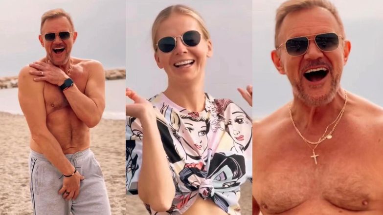 Zagadka została rozwiązana w niedzielę, kiedy to na profilu Edyty pojawiło się urocze wideo z rodzinnych zabaw na plaży. Głównym bohaterem teledysku jest ubrany jedynie w szare szorty Czarek. To zdecydowanie dobra wiadomość dla wszystkich tych, którzy bacznie obserwowali do tej pory stopniową metamorfozę sylwetki aktora. Przyznać trzeba, że długie godziny spędzone na siłowni zdecydowanie przyniosły efekty.
