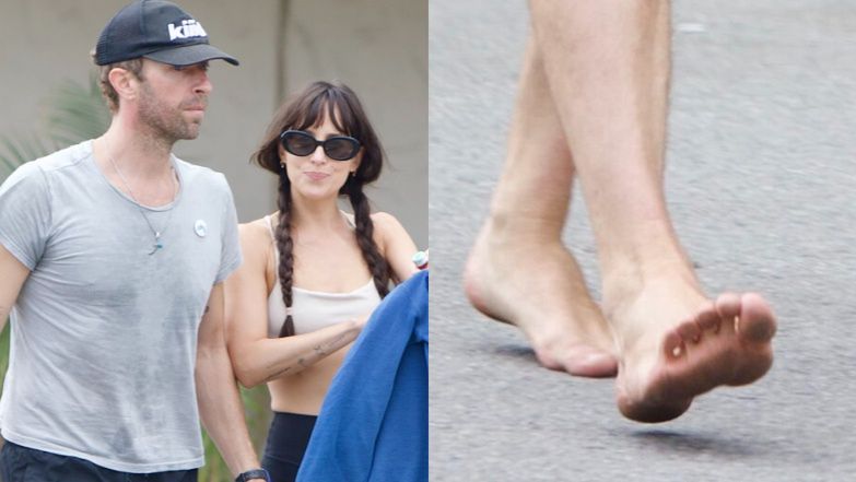 Chris Martin w towarzystwie Dakoty Johnson wietrzy stopy na parkingu w Malibu