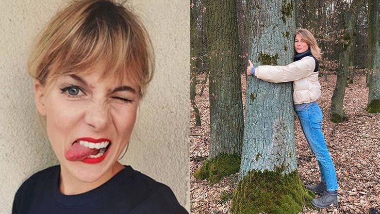 Chuda Marta Wierzbicka tuli się do drzewa i zapewnia: "Spacer to najlepszy plan na relaks (FOTO)