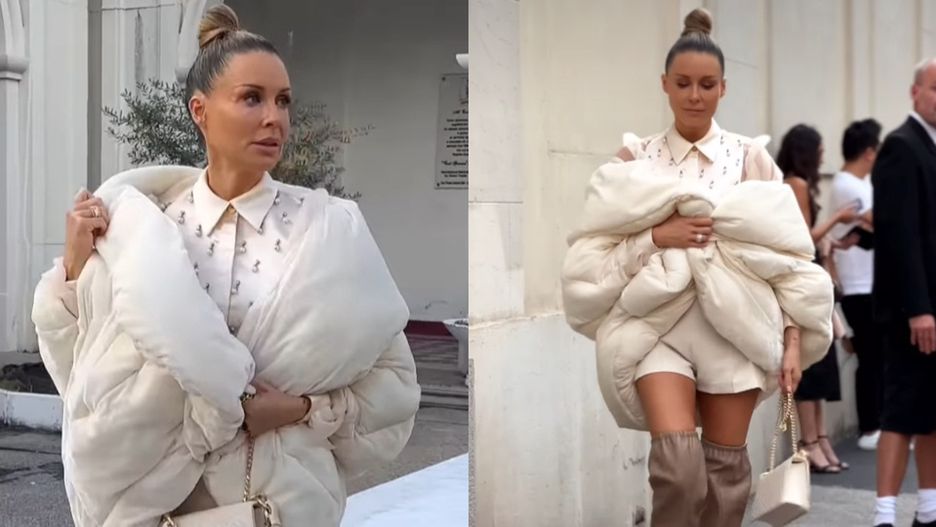 W piątek Rozenek pełniła honory polskiej delegacji na pokazie Elisabetty Franchi. Jej obecność na pewno została odnotowana, chociażby z uwagi na strój, w jakim paradowała na evencie. Gwiazda stawiła się w Mediolanie w efektownych, jasnych kozakach za kolano i prześwitującej koszuli w podobnym odcieniu. Największy szał zrobiła jednak puchowa kurtka (?), którą nonszalancko zarzuciła na siebie. Pudelek docenia! W końcu moda jest też od tego, żeby się bawić.